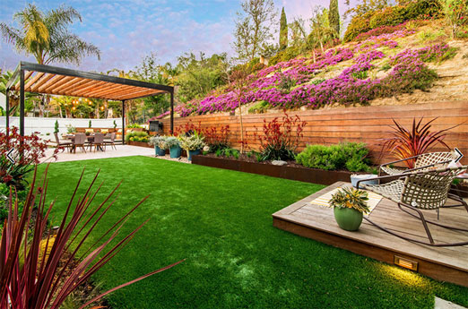 許多庭院都是這樣規劃,夏天就能在這里放仙女棒,木棧臺則方便坐著乘涼,好不愜意!